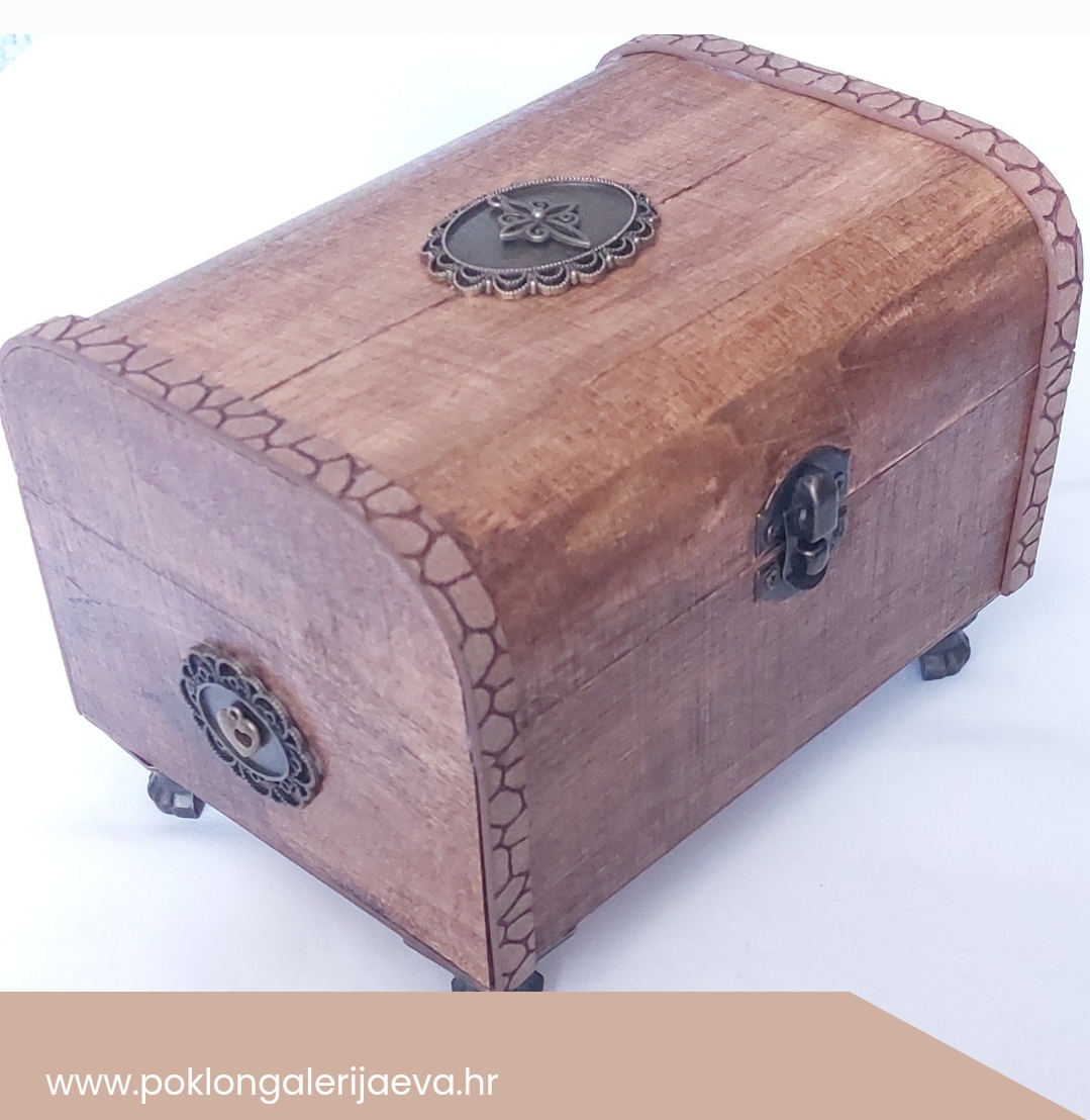 drvena kutija kao poklom ukrašena detaljima od mesinga