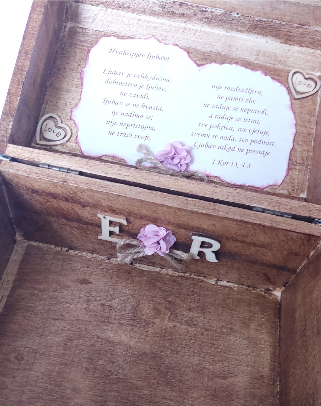 iznutra je ukrašena tekstom iz Biblije “Hvalospjev Ljubavi”